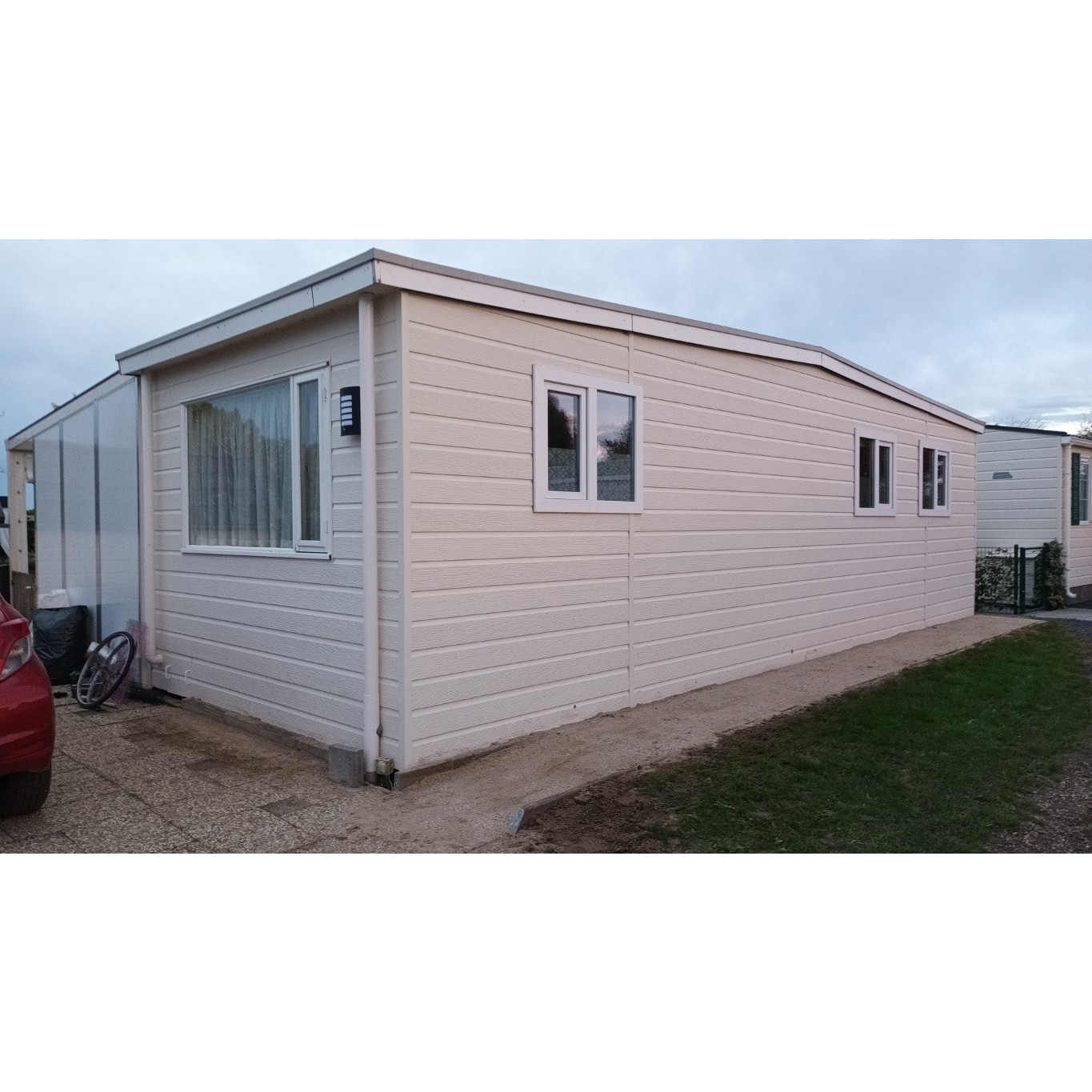 Eurotexx kunststof dubbel rabatdelen zijn erg sterk, kleurvast, weerbestendig en eenvoudig te monteren. Dat betekend onderhoudsarm, nooit meer schilderen en toch een houtgetrouwe uitstraling. Daarnaast verhoogt het de waarde, uitstraling en genot van je chalet, stacaravan, woning, recreatiewoning, woonboot, overkapping en tuinhuis. Eenvoudige montage en een lange levensduur.