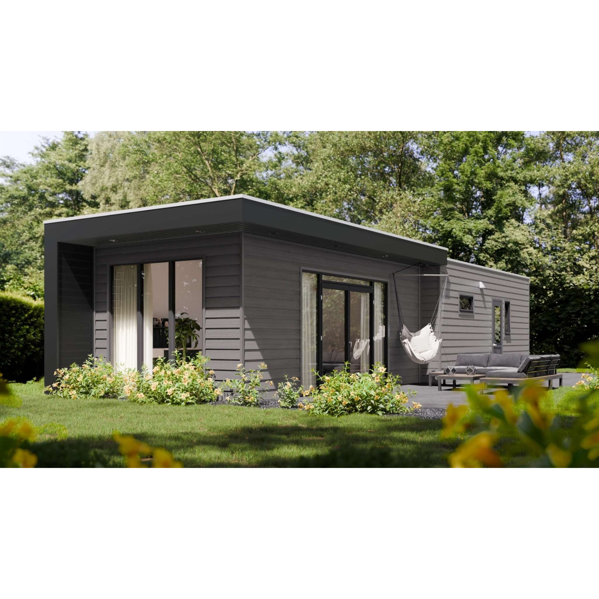 Ja, deze kleur past goed bij strakke woningen, overkappingen en bijgebouwen met sobere lijnen.