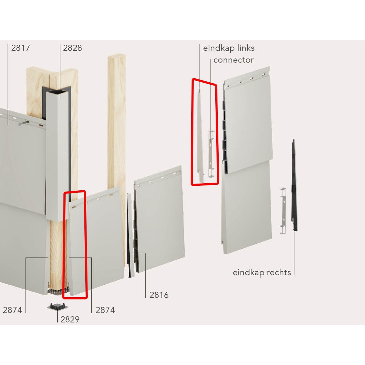 Het Keralit Eindkap links (Potdeksel 177) in de kleur Staalblauw zorgt u voor een mooie afwerking van de zijkanten van de planken. Deze kapjes klik je op deze uiteinden van de plank en is voorzien van een connector.