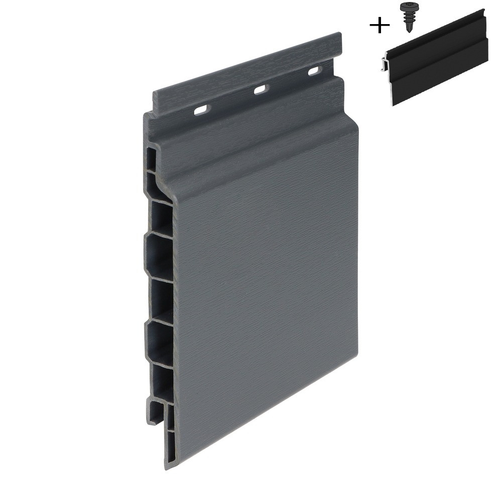 - Complete set: zwarte schaduwlijst + Keralit Sponningdeel 143 Basaltgrijs + schroeven