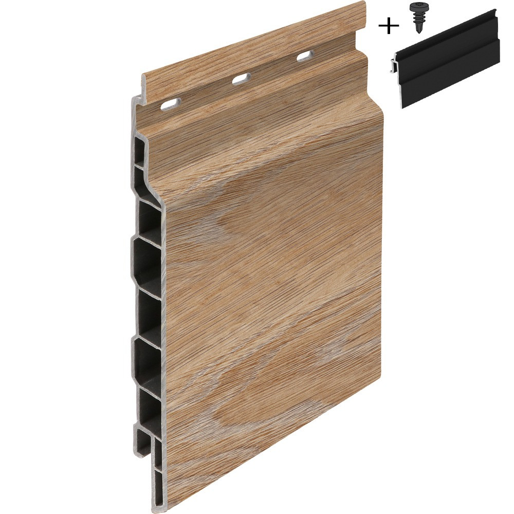 - Combinatie van Keralit Sponningdeel 143 Natuur Eiken + zwarte Shadowline-lijst + schroeven