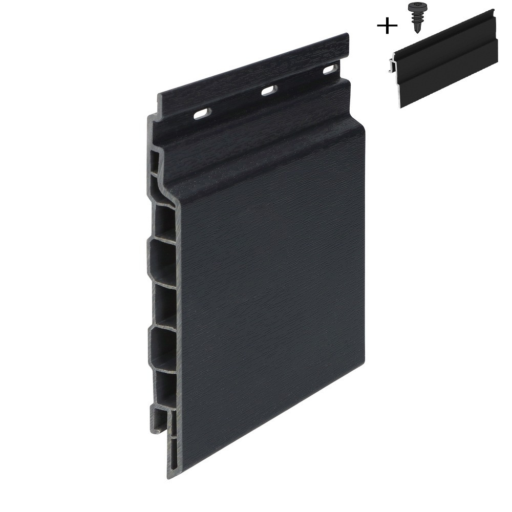 Complete set: zwarte schaduwlijst + Keralit Sponningdeel 143 Zwartgrijs + schroeven