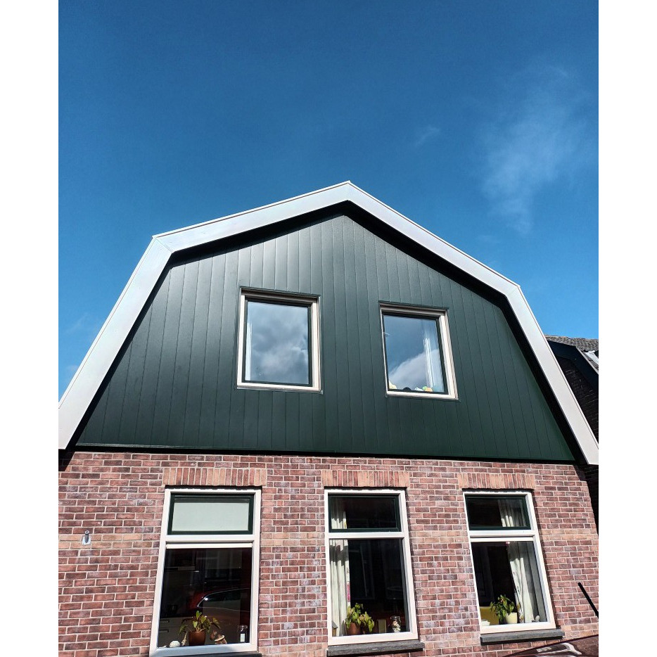 Keralit Sponningdeel 190 Donkergroen kunststof gevelbekleding is van hoge kwaliteit met een gegarandeerde en bewezen betrouwbaarheid. Keralit Sponningdeel 190 heeft een natuurlijke, chique en moderne uitstraling met een garantie van 10 jaar. Vanwege de mooie strakke groef die in de plank verwerkt is krijg je een heel mooi eind effect in je gevelbekleding. Door de hoge paneelhoogte krijg je een mooie moderne uitstraling.