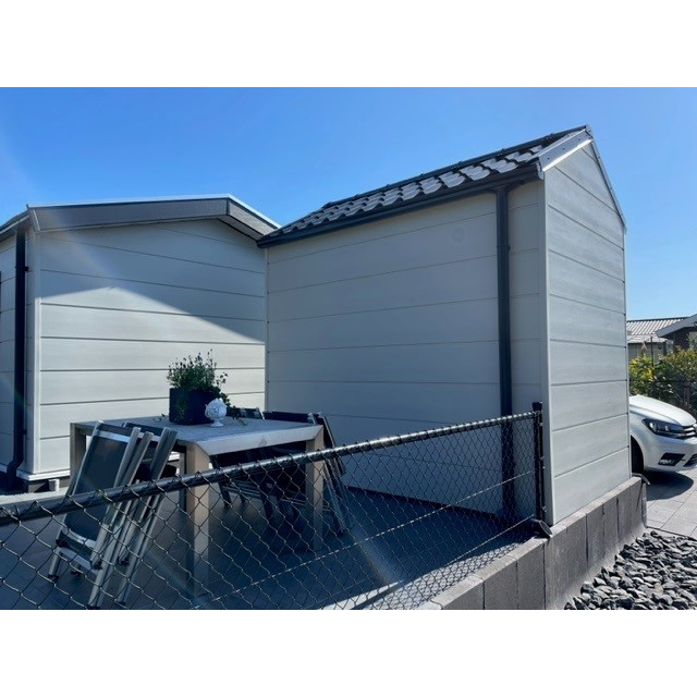 De Kerrafront gevelpanelen zijn erg sterk, kleurvast, tijdloos, weerbestendig en super eenvoudig te monteren. De panelen kunnen zowel verticaal als horizontaal gemonteerd worden. De panelen hebben een geraffineerde afwerking met een smalle groef waardoor er een wijdlopig gevelbeeld wordt gecreëerd. Dat betekend onderhoudsarm, nooit meer schilderen en toch een fantastische uitstraling. Daarnaast verhoogt het de waarde, aanzien en genot van je chalet, stacaravan, woning, recreatiewoning, woonboot, overkapping en tuinhuis. Eenvoudige montage en een lange levensduur.