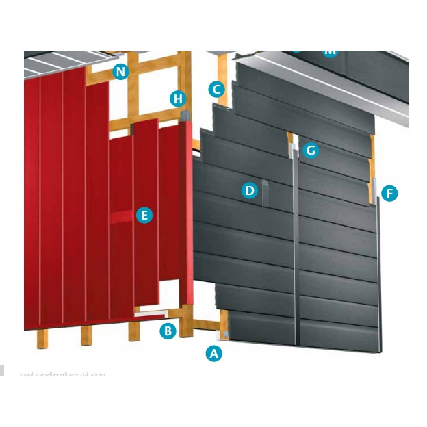 Voor gevel/muur: startprofiel, ventilatieprofiel, stootvoeg, ventilatie afsluitprofiel en schroeven.