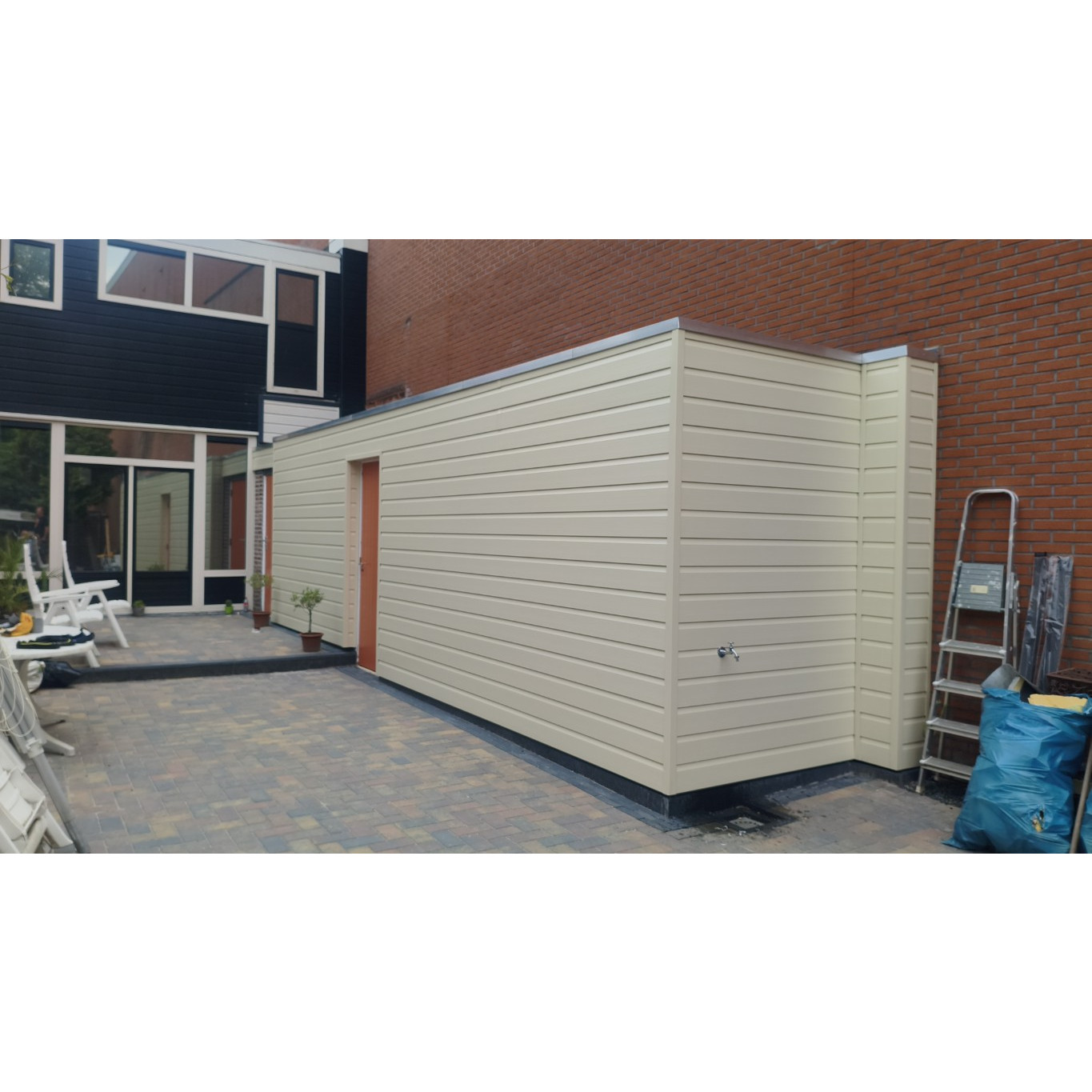 Voor chalet, stacaravan en schuur: startprofiel, ventilatieprofiel, hoekprofiel, verbindingsprofiel, eindprofiel 2-delig en schroeven.