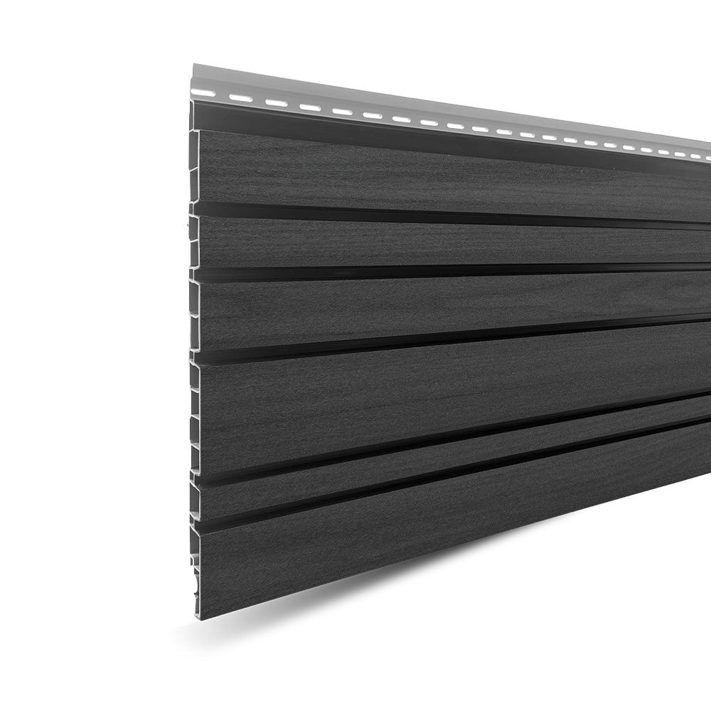 VinyPlus Vario Paneel Kitami Oak kunststof gevelbekleding bestaat uit een slimme plankopbouw met meerdere smalle banen in één paneel. Dit zorgt voor een strak lijnenspel en een rustige houtlook. De Kitami Oak kleur heeft een zwarte eiken uitstraling met een duidelijke houtstructuur, wat zorgt voor een strak en modern gevelbeeld. Dankzij het gebruik van hoogwaardig PVC blijft het paneel vormvast en hoef je nooit te schilderen.