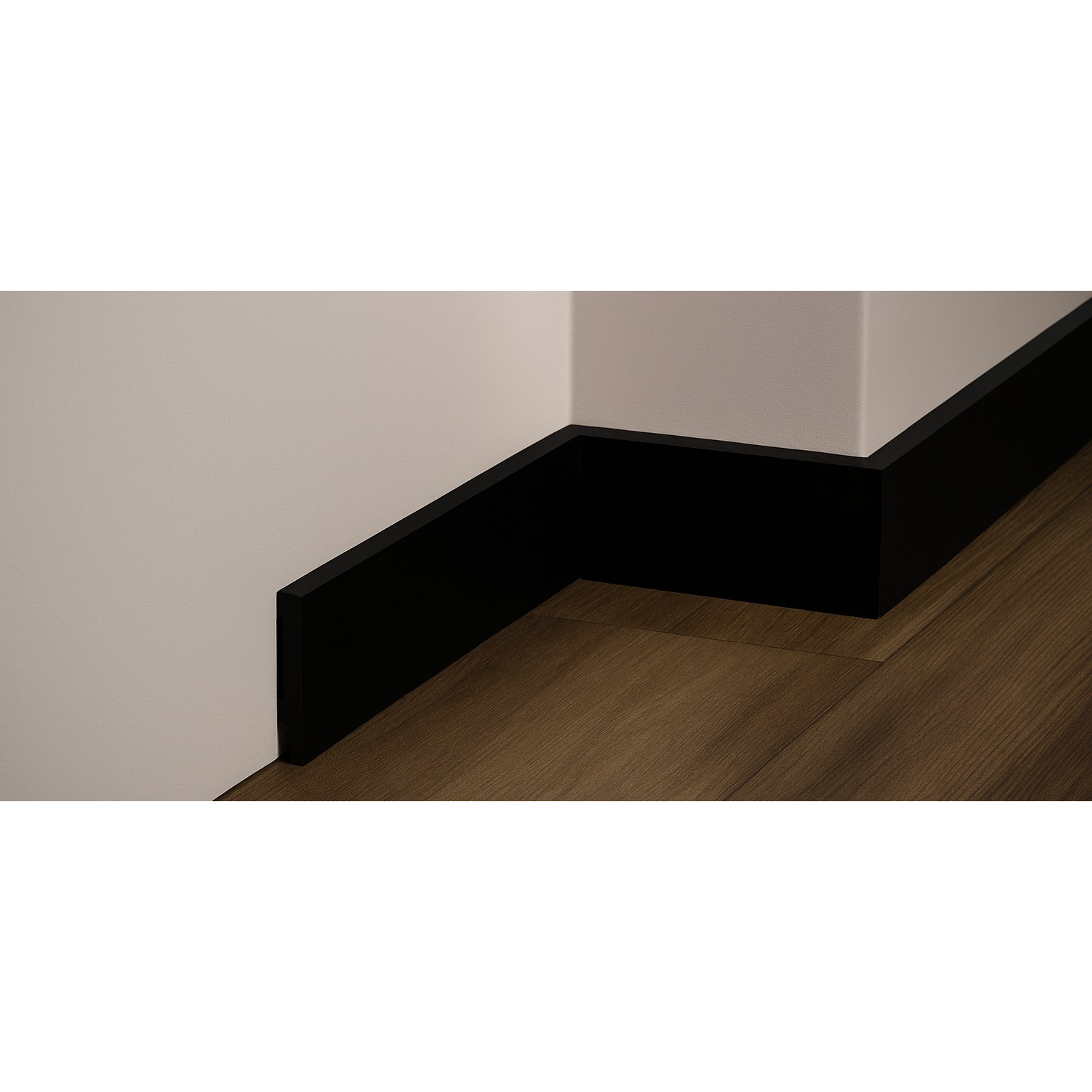 - Mat zwart: Geeft een rustige en strakke lijn langs de vloer.
